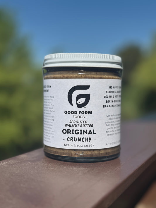 Good Form Foods is delicious nutrition for those who value their health, demand quality, and seek convenience without compromise. Our handmade sprouted walnut butter is not just our flagship product; it’s a statement of dedication to a purposeful lifestyle.