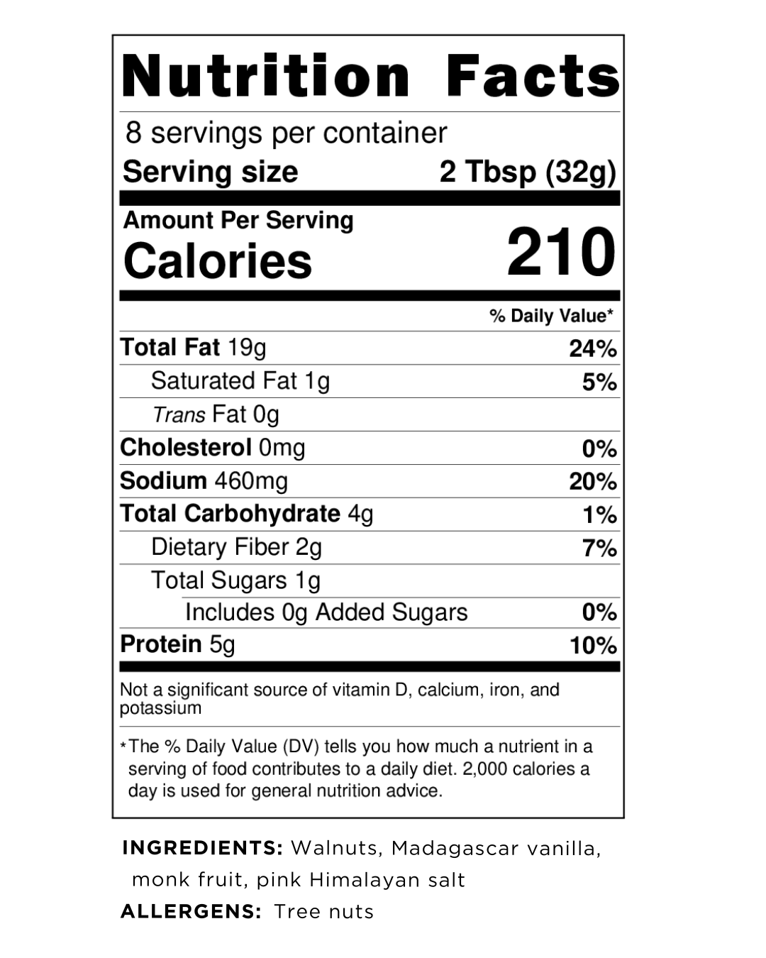 Sprouted Walnuts, Madagascar Vanilla, Monk Fruit.